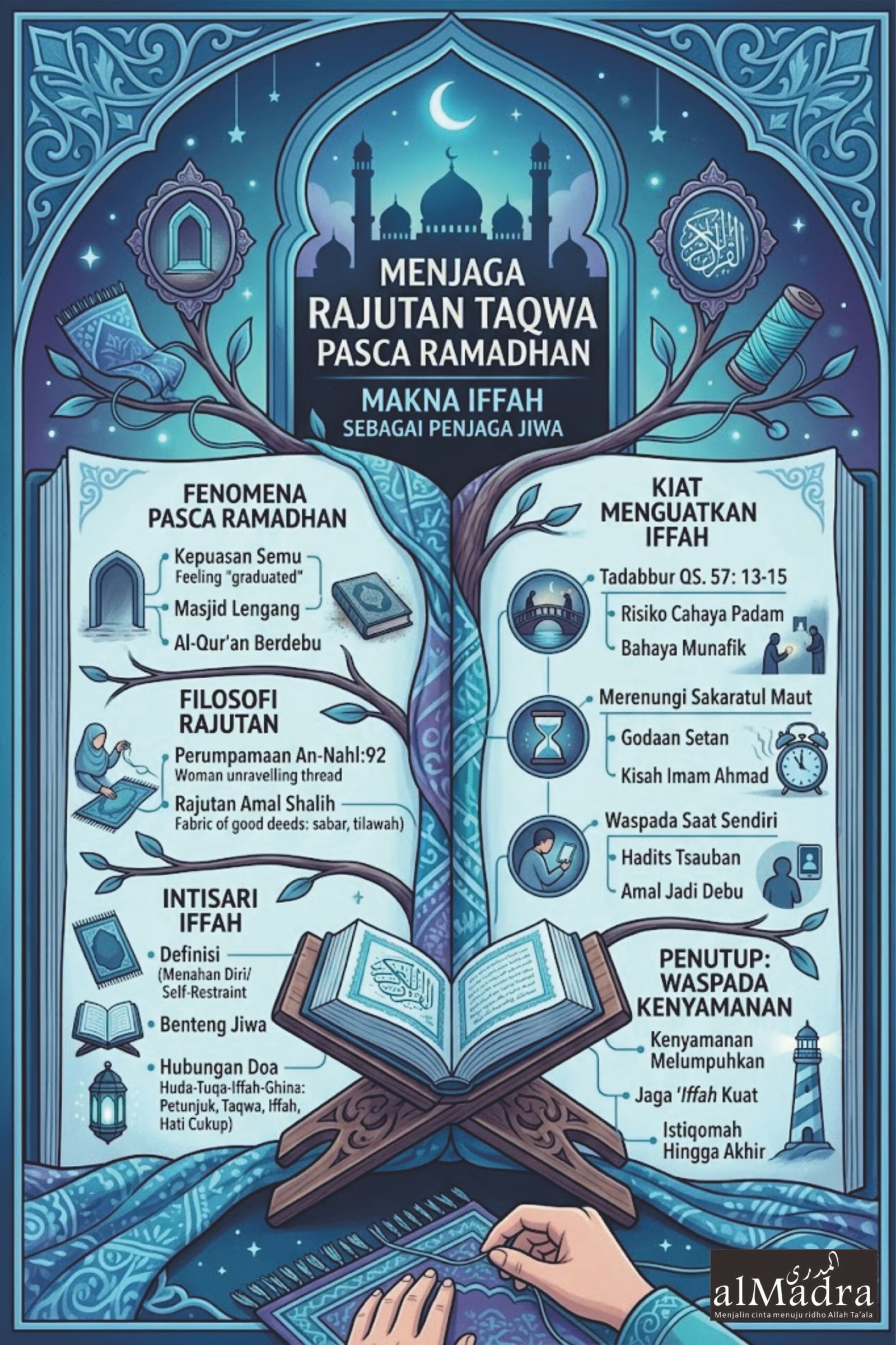 Tanpa ‘iffah, seorang hamba akan mudah terseret arus lingkungan dan fitnah. ‘Iffah adalah benteng. Ia bukan sekadar menahan diri dari yang haram, tapi juga menahan diri dari kemalasan dan rasa cukup atas amal yang sedikit. Tanpa penjagaan diri yang ketat, kemuliaan yang kita raih di bulan suci Ramadhan akan luntur seketika tersapu badai fitnah syahwat dunia.